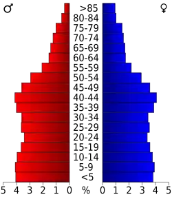 28,2 Prozent der Bevölkerung waren unter 18 Jahre alt. 9,5 Prozent zwischen 18 und 24 Jahre, 30,3 Prozent zwischen 25 und 44 Jahre, 20,6 Prozent zwischen 45 und 64 Jahre und 11,4 Prozent waren 65 Jahre alt oder älter. Das Durchschnittsalter betrug 34 Jahre. Auf 100 weibliche Personen kamen 97,8 männliche Personen. Auf 100 erwachsene Frauen ab 18 Jahren kamen 95,2 Männer.