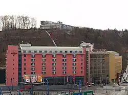 Seilbahn zwischen den beiden Gebäuden des Mövenpick-Hotels in Prag-Smíchov