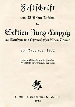 - Festschrift zum 25jährigen Bestehen der Sektion Jung-Leipzig des Deutschen und Österreichischen Alpenvereins. 26. November 1932. Leipzig, im Selbstverlag der Sektion 1932.
