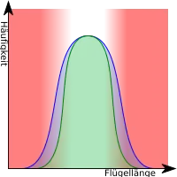 • bei stabilisierender Selektion ergibt sich eine Kurve, die bis zu einem bestimmten Maximum ansteigt (der optimalen Merkmalsausprägung), um danach wieder abzufallen.