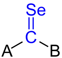 Allgemeine Struktur einer Selenocarbonylverbindung (Selenocarbonylgruppe blau gezeichnet):