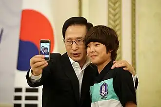 Selfies sind besonders beliebt bei Mädchen und jungen Frauen. Eine Funktion des Selfies kann darin liegen, sich durch soziale Bestätigung und Aufmerksamkeit attraktiv und in der eigenen Geschlechtsidentität bestätigt zu fühlen.[30] Zunehmend finden in sozialen Netzwerken und Online-Communitys wie reddit Selfies mit Nacktbildern und erotischer Fotografie Verbreitung.[31][32][33][34] Das Verbreiten der Bilder erfolgt in der Regel unentgeltlich und wird als erotisches Spiel betrachtet, es kann als Form des Exhibitionismus betrachtet werden. Ein Subreddit beschreibt dies mit den Worten: to exchange their nude bodies for karma; showing it off in a comfortable environment without pressure.[35] Aufmerksamkeit bekam das Phänomen auch durch Prominente, die vorsätzlich Nackt-Selfies von sich im Internet veröffentlichen.[36][37]