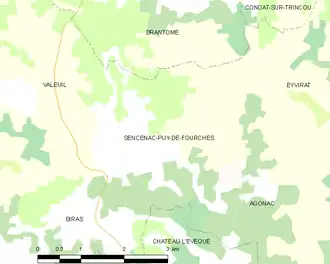 Umgeben wird Sencenac-Puy-de-Fourches von den Nachbargemeinden und delegierten Gemeinden: