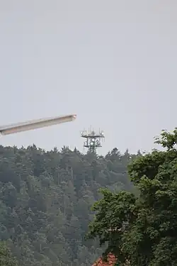 In der Nähe des Sendemastes befindet sich auch ein Fernmeldeturm in Stahlfachwerkbauweise.