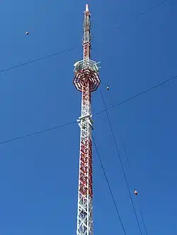 Bis vor einigen Jahren existierte noch ein zweiter Antennenträger in Form eines frei stehenden Stahlfachwerkturms.