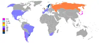 - Nicht qualifiziert: 11× (50 %; 1970, 1974, 1978, 1982, 1986, 1990, 1994, 1998, 2006, 2010 und 2014)