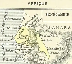 Senegambia (auch Senegambien) ist im engeren Sinne eine historische Bezeichnung für den geographischen Naturraum in Westafrika, der zwischen den Strömen Senegal im Norden und Gambia im Süden liegt.[1] Jedoch gibt es auch eine Textquelle, der zufolge Senegambia in einem weiteren Sinne verstanden und mit dem Begriff Westsudan gleichgesetzt wird. Gemeint seien nach dieser Lesart die Küstengebiete zwischen dem Senegalstrom und Sierra Leone, wobei die Inlandgrenze im Osten nicht weiter definiert sei.[2]