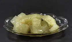Senfgurken sind sauer eingelegte und gegarte, mit Senfkörnern gewürzte, reife Gurken.