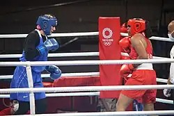 ![]() Senfira Magomedalijewa (links) beim Kampf gegen Naomi Graham bei den Olympischen Spielen 2020