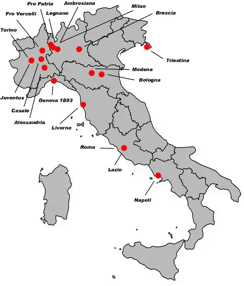 | Rom | Stadio della Rondinella (vom 1. bis zum 19. Spieltag) Stadio Nazionale del PNF (ab dem 21. Spieltag) Campo di Porta Romana, Foligno (am 29. Spieltag) |