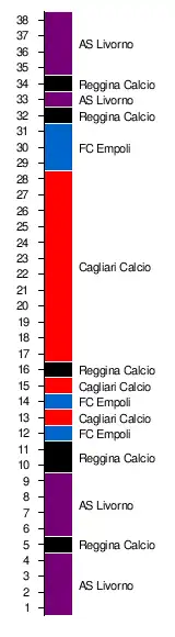| AS Livorno | 2:2 | 1:1 | 0:1 | 1:4 | 0:3 | 2:4 | 1:0 | 1:1 | 3:1 | 0:0 | 1:1 | 1:0 | 1:1 | 0:0 | 1:2 | 0:1 | 1:3 | 1:2 | 1:1 | |