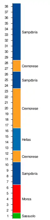 | Sampdoria Genua | 1:2 | 0:0 | 0:2 | 0:0 | 1:1 | 0:1 | 0:2 | 0:2 | 3:1 | 0:2 | 2:2 | 0:1 | 1:2 | 1:1 | 1:1 | 0:0 | 2:3 | 0:2 | 0:3 | |