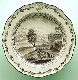 Das Service mit dem grünen Frosch (auch als Frosch-Service bezeichnet) ist ein umfangreiches Tafelservice, das von der englischen Keramikmanufaktur Wedgwood für die russische Kaiserin Katharina die Große hergestellt wurde. Das 1774 fertiggestellte Service umfasste Gedecke für 50 Personen und bestand aus insgesamt 944 Teilen, wobei es sich bei 680 Teilen um Geschirr für den Hauptgang und bei 264 Teilen um Geschirr für das Dessert handelte.[1][2] Auf Wunsch Katharinas II. wurden die Geschirrteile mit handgemalten britischen Ansichten dekoriert, die von Drucken abgemalt wurden; insgesamt sind auf dem Geschirr 1.222 verschiedene Motive abgebildet. In Bezug auf das Tschesmensker Palais, für das das Geschirr bestimmt war, wurde jedes Teil des Geschirrs mit einem grünen Frosch in einem Wappen verziert.[3]
