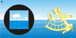 1. Sextanten auf den Horizont unterhalb der Sonne richten