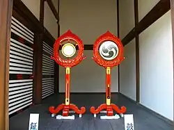 Der Gong tritt im Gagaku in drei verschiedenen Größen auf, je nachdem, wo er benutzt wird. Der kleinste befindet sich im tōgaku-Ensemble, der größte (daishōko) gehört zum bugaku im Freien. Er wird mit zwei Stöcken aus Hartholz gespielt. Seine Aufgabe ist es, den ersten Schlag jedes Taktes zu betonen; im vierten Takt kommt ein Auftakt hinzu.