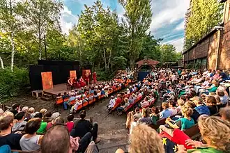 Mit Beginn der Spielzeit 2022 ist die Shakespeare Company vom Naturpark Südgelände in ein neu gebautes Halbrundtheater auf einer Wiese des Sommerbades am Insulaner umgezogen.