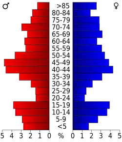 Auf das gesamte County bezogen setzte sich die Bevölkerung zusammen aus 22,90 % Einwohnern unter 18 Jahren, 4,80 % zwischen 18 und 24 Jahren, 22,20 % zwischen 25 und 44 Jahren, 26,50 % zwischen 45 und 64 Jahren und 23,60 % waren 65 Jahre alt oder darüber. Das Durchschnittsalter betrug 45 Jahre. Auf 100 weibliche Personen kamen 98,70 männliche Personen, auf 100 Frauen im Alter ab 18 Jahren kamen statistisch 96,80 Männer.