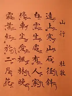 Einzelne Gedichte werden als gin (吟) bezeichnet. Sie bestehen meist aus vier oder mehr Zeilen, die mit chinesischen Schriftzeichen oder in Kanji geschrieben sind. Alle Zeilen haben eine identische Anzahl an Zeichen. Gin, die aus vier Zeilen mit jeweils sieben Zeichen bestehen werden shichigon-zekku (七言絶句, „Sieben-Wort-Satz“) genannt.