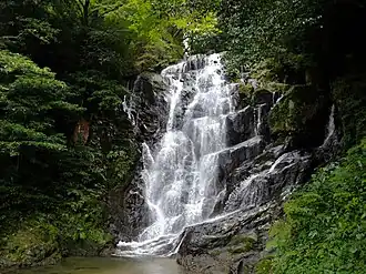 Der Wasserfall liegt auf halber Höhe des Hagane-yama (羽金山) in der Sefuri-Bergkette (背振山系) und am Fluss Kawatsuki, der weiter nach Norden fließt, wo er in den Nagano mündet.[1][2] Dieser ist wiederum ein Zufluss des Izumi bzw. Raizan, der wenige hundert Meter nach Westen in die Funakoshi-Bucht in der Koreastraße mündet.[3]