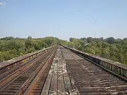 Im Juli 2006 verursachte ein Großfeuer auf der Brücke einen Schaden von etwa 200.000 US-Dollar. Bis zur Instandsetzung musste der Eisenbahnverkehr ruhen. Die Ursache des Feuers war Brandstiftung, Brandbeschleuniger wurden gefunden. Durch das Feuer hatte die Brücke an der betreffenden Stelle nur noch eine Tragfähigkeit von etwa 25 kg. Die Behörden sperrten die Brücke ab und inzwischen warnt ein Schild am Zaun vor dem Unberechtigten Betreten des Bauwerkes, welches mit Geldstrafen und in schweren Fällen Gefängnis geahndet wird. Innerhalb weniger Wochen nach dem Brand wurde die Brücke instand gesetzt, damit die Kunden der Eisenbahngesellschaft westlich des Flusses, die sonst keine andere Möglichkeit des Gleisanschlusses haben, wieder bedient werden konnten.