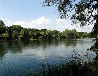 | Blick vom Südufer auf den Sieben-Meter-Teich | ||