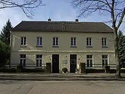 Das einstöckige Toiletten-/Stall-Backsteingebäude liegt separat über dem Hof.[49]