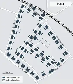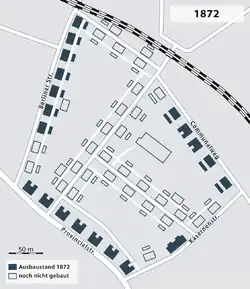 Ab 1865 entstanden zehn weitere Wohngebäude, sieben in der Berliner Straße (Nr. 8, 10, 12, 14, 16, 18, 20) und zwei in der Wesselkampstraße (Nr. 19/21 und 23/25).