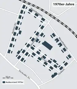 Die Anwohner wehrten sich zunächst wenig erfolgreich mit Leserbriefen gegen die Abrisspläne. 1968 wurde zumindest der Bebauungsplan dahingehend geändert, dass einige wenige historische Gebäude erhalten werden sollten und ansonsten zweistöckige Mietshäuser und Eigenheime errichtet werden sollten.[32] 1969 wurde eine Unterschriftenliste gegen die Abrisspläne initiiert.