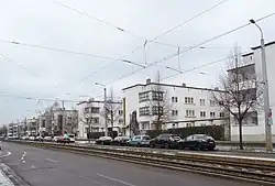 Wohnblock mit Eckgebäude am westlichen Ende -