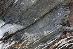 Insgesamt wurden entlang eines etwa drei Kilometer langen Flussabschnitts über 500 Ritzzeichnungen an 94 Fundstellen entdeckt, von denen jedoch nur wenige in ihrer Präzision und Ausdrucksstärke an die Höhlenmalereien von Altamira oder Lascaux heranreichen. Dargestellt sind im Wesentlichen Pferde, Stiere, Hirsche und Ziegen. Auch eine Zeichnung eines Wollnashorns glaubt man identifizieren zu können. Die Bearbeitung des Steins erfolgte durch Ritzen und Hämmern mit anderen, meist härteren Steinen, wobei jedoch nur die Umrisse der Tiere dargestellt sind – die Körperflächen selbst bleiben, wie bei Felszeichnungen üblich, unbearbeitet.