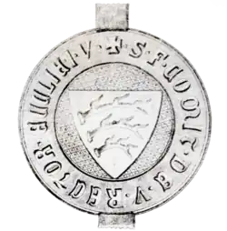 Graf Friedrich von Veringen | „S • F • COMIT • DE • V • RECTOR • ECCLIE • I • V •“ | Graf Friedrich von Veringen, Kirchherr in Veringen 1357–1385. Das Siegel ist auf einer Urkunde aus dem Jahre 1357. |