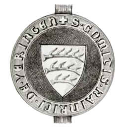 Wolfrad junior von 1252 bis 1268. | „S • COMITIS • WOLFRADI • DE • VERINGEN • JUNIORIS“ | Das Siegel erscheint erstmals im Jahre 1265. |