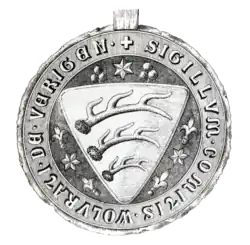 Graf Wolfrad 1297–1330. | „S • COMITIS • WOLFRANOMI • DE • VERINGEN •“ | Das Siegel stammt aus dem Jahre 1324. |