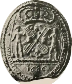 Das Siegel trägt die Beschriftung SIGILLUM CIVITATIS NOVI EBORACI, was „Siegel der Stadt New York“ bedeutet. Eboracum war der römische Name für York, das zu Ehren des späteren Jakob II., der zum Zeitpunkt der Namensgebung Duke of York war, als Namenspate gewählt wurde. Civitas Novi Eboraci ist folglich der latinisierte Name der Stadt New York. Die Beschriftung und ihre Anordnung folgt der europäischen Tradition hochmittelalterlicher Siegel von Städten und Adelsgeschlechtern, wenn auch im unüblichen Gegenuhrzeigersinn.