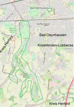 - ↑ Siehe Festsetzungskarte 1 zum Landschaftsplan Bad Oeynhausen hier (Seite nicht mehr abrufbar, festgestellt im Mai 2024. Suche in Webarchiven) Info: Der Link wurde automatisch als defekt markiert. Bitte prüfe den Link gemäß Anleitung und entferne dann diesen Hinweis.