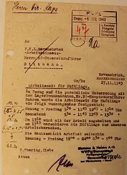 - ↑ a b c Projekt Siemens Ravensbrück: Arbeitsbedingungen. Werner-von-Siemens-Werkberufsschule – Schule in freier Trägerschaft der Siemens AG, 2010, abgerufen am 20. September 2015.