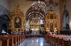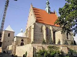 Die Kirche wurde 1401 von der Magnatenfamilie Odrowąż, deren ortsansässiger Zweig sich bald Szydłowiecki nannte, gestiftet und im Laufe des 15. und frühen 16. Jahrhunderts mehrmals im gotischen Stil ausgebaut. Sie diente auch als Grablege der Stifterfamilie. Fresken in der Kirche schuf Stanisław Samostrzelnik aus Krakau. 1563 wurde die Pfarrkirche von Mikołaj Radziwiłł Czarny geschlossen, da er zum kalvinistischen Glauben übergetreten war. Sein Sohn Mikołaj Krzysztof Radziwiłł stellte sie wieder den Katholiken zur Verfügung. In der Kirche befinden sich wertvolle Kunstschätze, unter anderem ein Grabmal aus der Werkstatt von Bartolomeo Berrecci sowie ein gotisches Polyptychon.