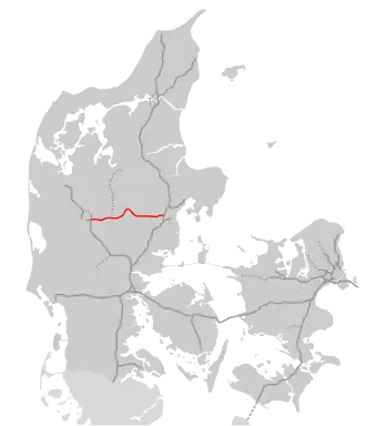 | Straßenende: | Motorvejskryds Herning (56° 7′ 51″ N, 8° 59′ 26″ O) | ||||||||||||||||||||||||||||||||||||||||||||||||||||||||||||