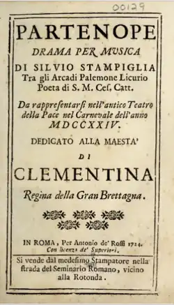 - ↑ a b c d Petra Chrastinová: Analisi del libretto della Partenope di Silvio Stampiglia e del libretto d’Argenide di Alvise Giusti. Brno 2008.