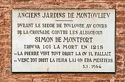- ↑ Histoire générale de Languedoc. Bd. 5, hrsg. von C. Devic und J. Vaissete (Toulouse, 1842), S. 256–257. Catalogue des actes de Simon et d’Amaury de Montfort. Hrsg. von August Molinier in Bibliothèque de l’école des chartes. Vol. 34 (1873), Nr. 120.