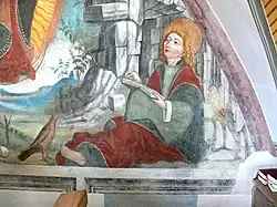 - 1491, Niederdorf, St. Magdalena in Moos, Chorfresken (4 Evangelistensymbole, Verkündigung, Fußwaschung durch Magdalena)