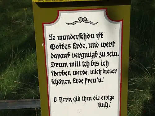 - Ulrike Lange, Holger Heine: Glauben Daheim: Zeugnisse evangelischer Frömmigkeit / Zur Erinnerung: Zimmerdenkmale im Lebenslauf. Herausgegeben vom Zentralinstitut und Museum für Sepulkralkultur. Arbeitsgemeinschaft Friedhof und Denkmal, Kassel 1994, ISBN 3-924447-09-8 (Ausstellung des Fränkische-Schweiz-Museums Tüchersfeld, 22. Juli bis 13. September 1994 und des Museums für Sepulkralkultur Kassel, 21. Oktober 1994 bis 31. März 1995).