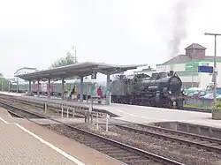 Südseite des modernisierten Empfangsgebäudes mit Gleisanlagen