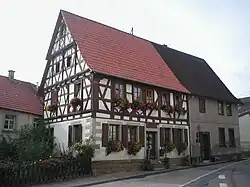 Das Haus steht traufseitig zur Straße und besteht aus dem gemauerten Erdgeschoss, einem Fachwerkstock und zwei Dachstöcken. Der Rähmbau aus dem Jahr 1708 wurde 1851 massiv erneuert. Eine Inschrift über dem Eingang lautet: „18 Jacob Neff 51“. An der Giebelseite führt von außen eine Treppe in den gewölbten Keller.