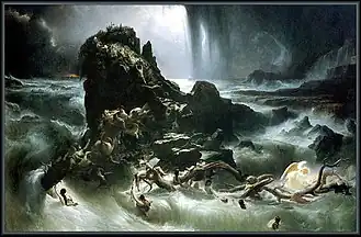 - Auch die Schöpfungsgeschichte der alt-isländischen Prosa-Edda kennt die Geschichte einer weltweiten Flut, die nur der Riese Bergelmir und seine Frau überlebten.