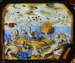- Am 11. Tag des elften Monats öffnete Noah das Fenster und ließ einen Raben fliegen: Der flog aus und ein, bis das Wasser auf der Erde vertrocknet war.
