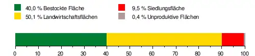 Es besteht zu 40,0 % aus bestockter Fläche, zu 50,1 % aus Landwirtschaftsfläche, zu 9,5 % aus Siedlungsflächen und zu 0,4 % aus unproduktiven Flächen.[4]