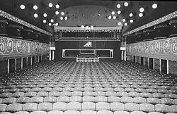 Der Kinosaal hatte eine gewölbte Decke, die dunkelblau gestrichen war, das sollte an einen Nachthimmel erinnern. Von der Decke hingen runde Lampen (später entfernt), die den freien Raum unterstrichen. Die Türen zu den seitlichen Rängen waren wie Hausfassaden gestaltet. Das übrige Interieur wurde in roten Farbnuancen gehalten. Die gesamte Komposition sollte an eine Freilichtbühne erinnern.[2] Am 20. September 1923 fand die feierliche Einweihung statt.