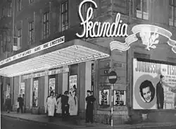 Der erste größere Umbau des Skandia-Theaters fand 1943 statt. An der Hausfassade wurde ein für damalige Kinos typisches nach oben gerichtetes Vordach angebracht, reich verziert mit vielen Neonröhren. Im Inneren geschahen große Veränderungen, unter anderem wurde die einstmals dunkelblaue Decke weiß gestrichen, was bei Fachleuten Kopfschütteln hervorbrachte (wegen der Lichtreflexe) und hart von der Presse kritisiert wurde.[1]