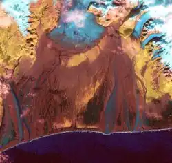 Andererseits besteht der Sander nicht zur Gänze aus neuzeitlichen Sedimenten. Es gibt z. B. auch eine Steilküste.[5] Außerdem entdeckten Geologen durch seismologische Untersuchungen ein 100–150 m tiefes Tal im Grundgestein unter den neuzeitlichen Sedimentschichten, das vermutlich durch Gletscherflüsse der Eiszeit ausgefräst worden war.[4]
